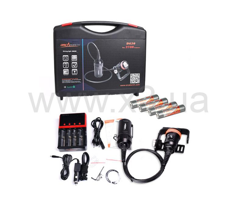 ORCATORCH D620V это подводный фонарь канистрового типа, специально разработанный для подводной фото и видео съемки. Он имеет супер широкий свет 120 градусов, без слепой зоны для подводной фотографии. Использует новейший светодиод CREE XHP70 США, с яркостью до 2700 Люмен. Новый поворотный переключатель может быть заблокирован при повороте на 90 градусов, что не только обеспечивает легкую и надежную работу, но также позволяет избежать случайного включения или отключения света. Удобная ручная рукоятка Good-pack легко монтируется вручную. Фонарь работает от 4 аккумуляторов 18650, и имеет герметичность до 150 метров погружения, что делает его очень полезным инструментом для удовлетворения ваших подводных приключений.