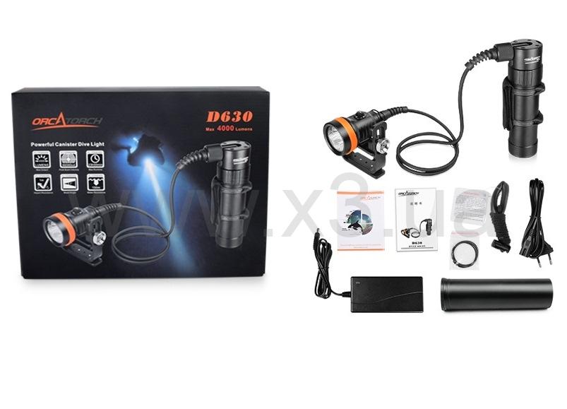 OrcaTorch D630 - идеальный фонарь для погружений в пещерах, затонувших кораблях и других подобных местах. Свет обеспечивает до 4000 люмен, а регулируемый угол наклона позволяет поворачивать фонарик на 90° и 180°. Аккумуляторная батарея большой емкости обеспечивает до 5 часов превосходного погружения в самом ярком режиме. Аккумулятор также можно извлечь и использовать в качестве источника питания.