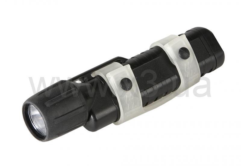 Mini Q40 XENON - компактный фонарь, который отлично подходит для крепления на маску при помощи силиконового крепления. Корпус выполнен из ударопрочного ABC-пластика, а оголовье дополнительно защищено резиновым кожухом.Ксеноновая лампа 2.1 Вт питается от четырёх батарей типа AA. Время бесперебойной работы лампы от одного комплекта батарей составляет 5 часов.
