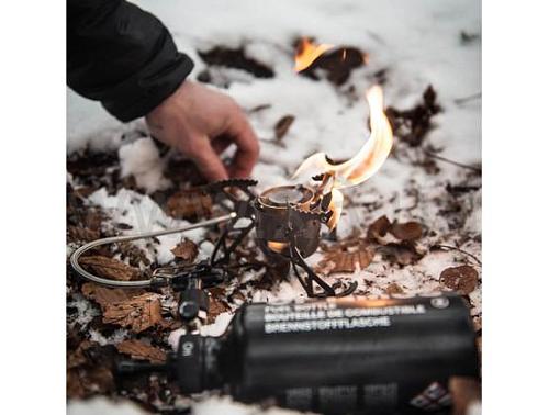 Время непрерывной работы на максимальной мощности: жидкое топливо 100 минут (топливная фляга 400 мл); газ 105 минут (баллон 220 г)