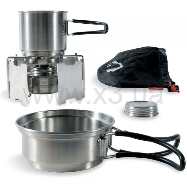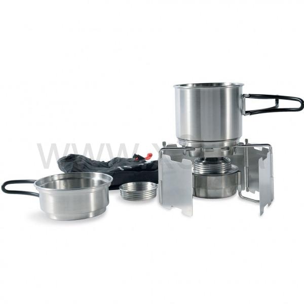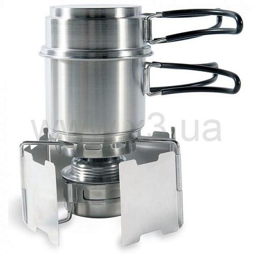Популярную горелку Alcohol Burner теперь можно не собирать частями, а купить в наборе, в котором идут емкости для приготовления пищи, ветрозащита, подставка и мешок для хранения. Позволяет быстро приготовить еду в походных условиях. Время горения приблизительно 40 мин.