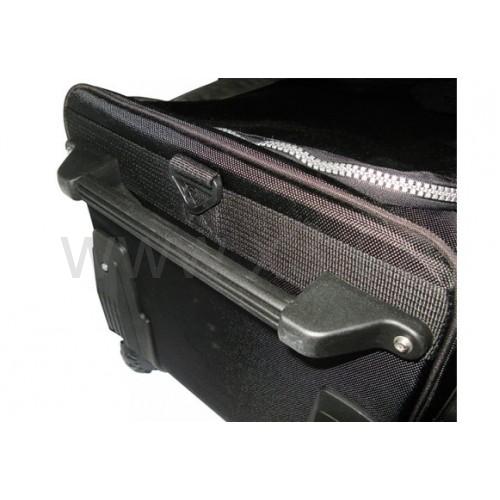 Закрывается сумка с помощью верхнего клапана и мощной молнии, проходящей по всему периметру клапана, и двумя встречными металлическими бегунками, которые, при желании, могут быть скреплены друг с другом небольшим замочком на случай сдачи сумки в багаж. Для вертикальной транспортировки сумки служит транспортная ручка, расположенная с торца и высокопрочные колеса, вмонтированные в надежную конструкцию внутренней рамы. Ручка легко противостоит мгновенным нагрузкам до 75 кг, а вся конструкция в целом легко обеспечивает грузоподъемность до 30 кг. Сумка отлично сбалансирована. Практически отсутствует эффект раскачивания. В такую сумку без труда помещаются даже самое объемное снаряжение дайвера.