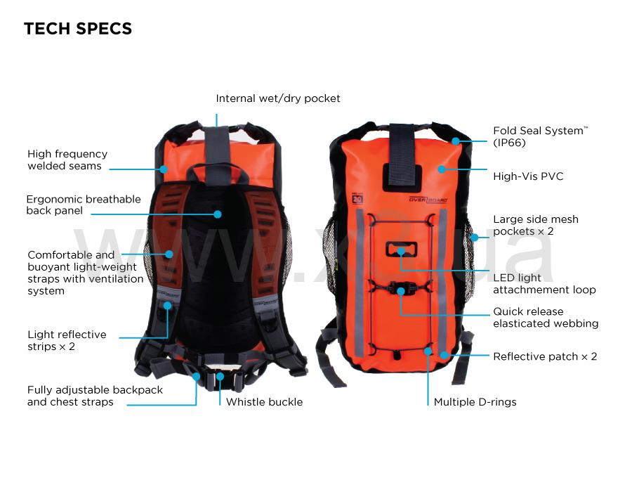 Технические характеристики влагозащитного рюкзака Overboard Pro-Vis Backpack 30l: