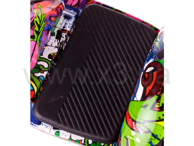 За счет аккуратного коленного руля, внешне модель выглядит довольно компактной, несмотря на добавленный объем колесам. Руль покрыт мягким кожухом, благодаря которому комфортно управлять гироскутером.