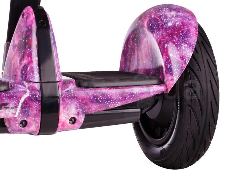 Безопасность поездки обеспечит функция самобалансировки и телескопический рулевой рычаг. В TaoTao используется 2 пары ходовых огней. Фотодиоды реагируют на освещение и автоматически настраивают нужный уровень яркости. Надувные колеса диаметром 10.5 дюйма позволяют комфортно передвигаться не только по асфальту, но и на тротуарной плитке и грунтовке. Гироскутер имеет защиту от брызг воды м грязи. Он способен развивать скорость до 16 км/ч!