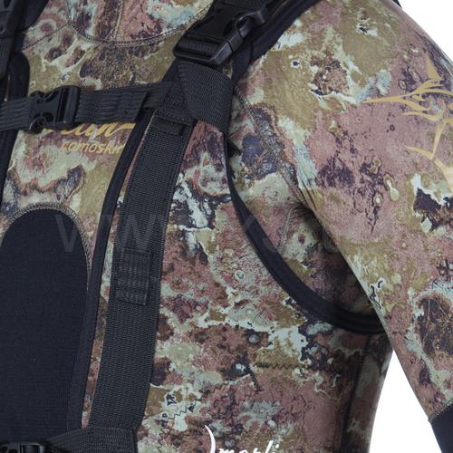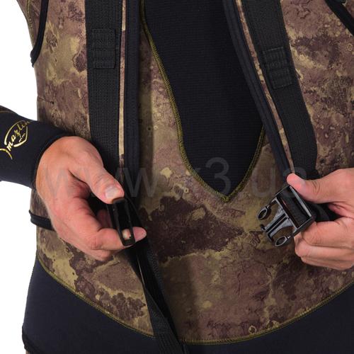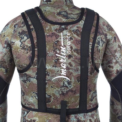 Жилет грузовой быстросъемный Marlin Balance изготовлен из компрессионного неопрена 3 мм - плотность данного вида неопрена снижает положительную плавучесть жилета и требует меньше грузов для отгрузки пловца. Шесть карманов на спине и два в передней части обеспечивают ныряльщику нужный баланс. С помощью ремней жилет легко и быстро подгоняется под индивидуальные размеры: рост и объем груди - такие регулировки придают жилету лучшее облегание и обтекаемую форму. При этом эластичный неопрен, из которого выполнен грузовой быстросъемный жилет Marlin Balance, позволит дышать полной грудью. В нижней части жилета расположен страховочный ремешок с петлей, через пах он фиксируется за язычок ремня или нижний фастекс жилета, что предотвращает произвольное скольжение жилета. Такая индивидуальная подгонка плюс анатомический крой обеспечивают комфортное пребывание охотника под водой.
