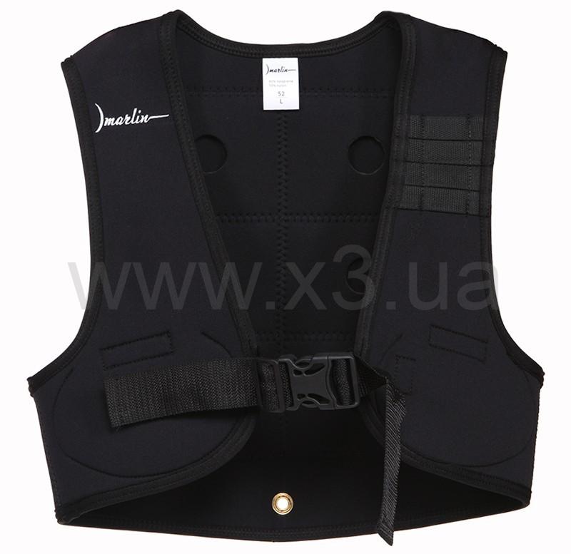 Жилет для грузов Marlin - предназначен для корректного распредления веса грузов по телу пловца, дабы устранить чрезмерную нагрузку на поясницу. Изготовлен из плотного двудублированного неопрена, оснащен регулируемой застежкой - фастекс.