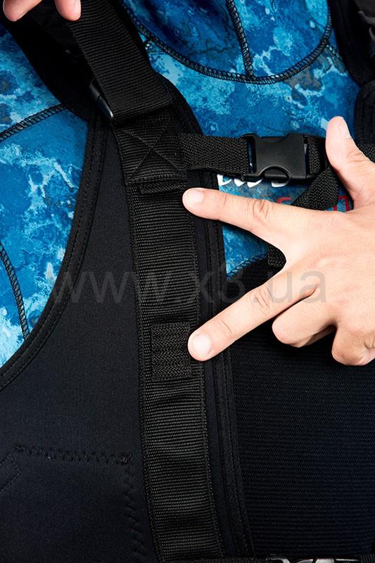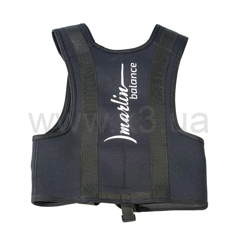 Жилет грузовой быстросъемный Marlin Balance изготовлен из компрессионного неопрена 5 мм - плотность данного вида неопрена снижает положительную плавучесть жилета и требует меньше грузов для отгрузки пловца. Шесть карманов на спине и два в передней части обеспечивают ныряльщику нужный баланс. С помощью ремней жилет легко и быстро подгоняется под индивидуальные размеры: рост и объем груди - такие регулировки придают жилету лучшее облегание и обтекаемую форму. При этом эластичный неопрен, из которого выполнен грузовой быстросъемный жилет Marlin Balance, позволит дышать полной грудью. В нижней части жилета расположен страховочный ремешок с петлей, через пах он фиксируется за язычок ремня или нижний фастекс жилета, что предотвращает произвольное скольжение жилета. Такая индивидуальная подгонка плюс анатомический крой обеспечивают комфортное пребывание охотника под водой.
