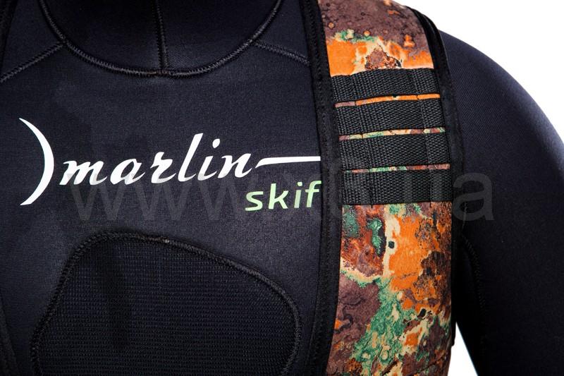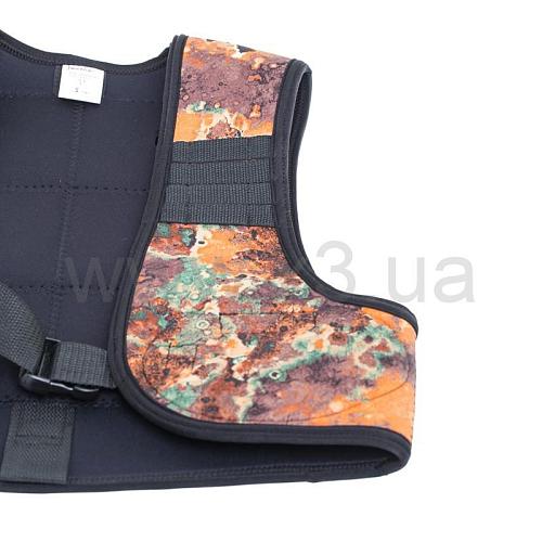 Жилет грузовой быстросъемный Marlin Vest Brown (Марлин Вэст Браун) - предназначен для корректного распредления веса грузов по телу пловца, дабы устранить чрезмерную нагрузку на поясницу. Изготовлен из плотного двудублированного неопрена, оснащен регулируемой застежкой - фастекс. Особенности конструкции жилета позволяют быстро и надежно закрепить нож в районе левой верхней части груди охотника.