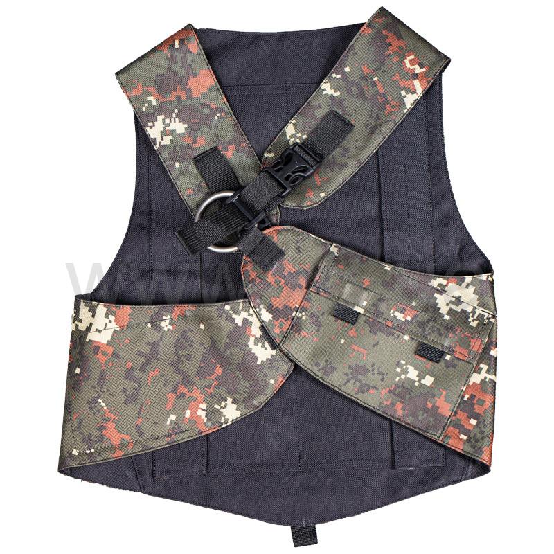 Сброс данного жилета происходит в одно движение. Фастекс легко нащупывается пальцами даже в толстой зимней рукавице. После нажатия фастекса его половинки проскальзывают сквозь удерживающие кольца, и жилет беспрепятственно покидает охотника. Использование высококачественной фурнитуры и нейлона плотностью 600 DEN повышает износостойкость. Также жилет имеет петлю для крепления стопора под ремень.