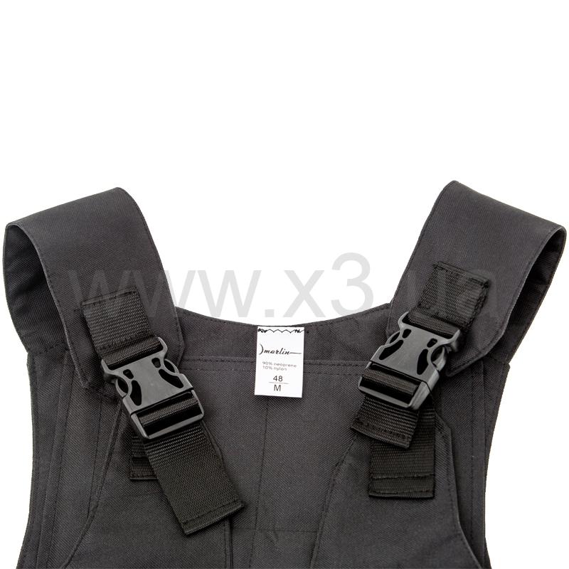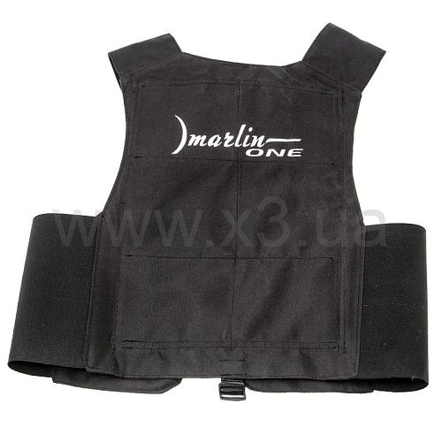 Жилет грузовой быстросъёмный Marlin One (Марлин Ван) – изготовлен из нейлона плотностью 600 Den. Главной особенностью данной модели жилета является наличие боковых вставок из эластичной башмачной резинки. Эти боковые вставки обеспечивают идеальное прилегание жилета, при этом абсолютно не сковывают движения пловца. Регулировка размера происходит при помощи 2-х вертикальных и 2-х горизонтальный ремней.