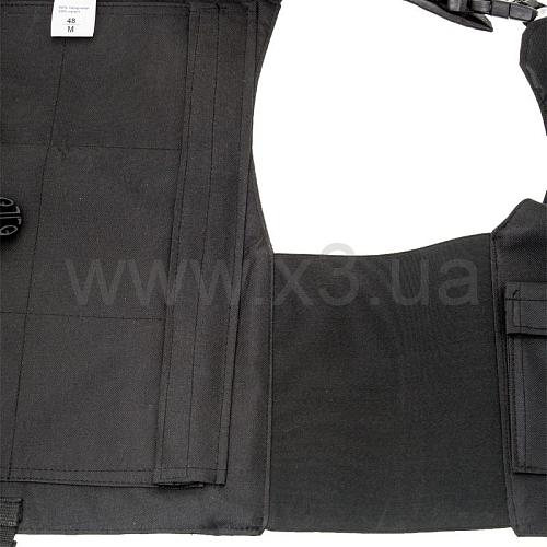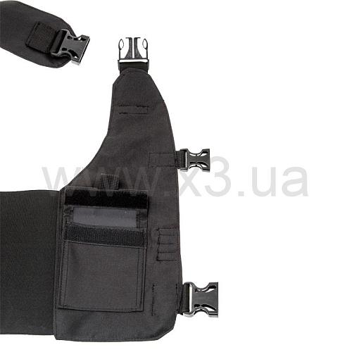 Застёжки типа-фастекс раскрываются одним нажатием, их легко нащупать в неопреновых перчатках. Для сбалансированного распределения грузов, жилет имеет 8 карманов (6 на спине и 2 спереди). На левой лицевой стороне жилета предусмотрено крепление для ножа. В нижней части жилета расположен страховочный ремешок с петлей, через пах он фиксируется за язычок ремня или нижний фастекс жилета, что предотвращает произвольное скольжение жилета.