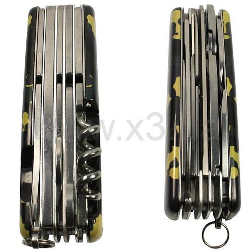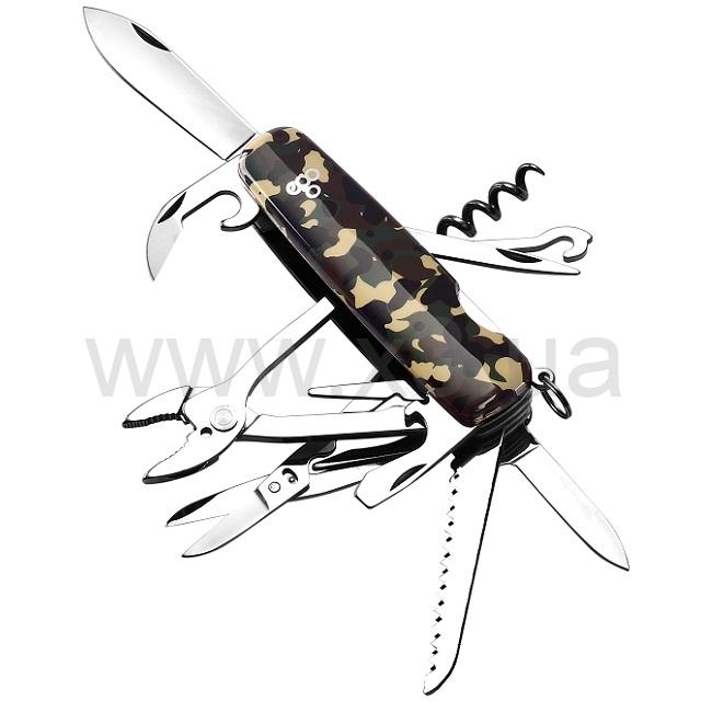 Ego Tools A01.12 камуфляж укомплектован не только классическими повседневными инструментами, но и более специализированными, подходящими для выполнения хозяйственно-бытовых работ. При помощи данной модели можно решать элементарные задачи и проводить более сложные работы без привычных инструментов как в домашних, так и в походных условиях.