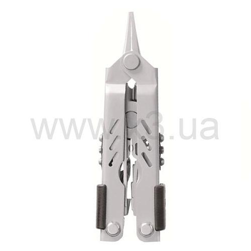 Помимо выдвижных плоскогубцев с кусачками, которые можно открыть одним пальцем, в комплект входят: нож с комбинированной заточкой (2/3 серрейторная заточка), крестовая отвертка, три плоских отвертки разного размера, открывалки для консервных банок и бутылок.
