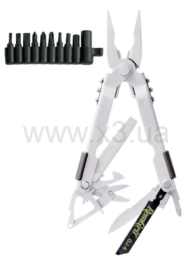 Мультитул Multi-Plier это полнофункциональный инструмент, который может поместиться у Вас на ладони. Pro Scout это самый полный набор в серии Multi-Plier 600. Данный мультитул оснащен системой открывания в одно касание. Изюминкой именно этого мультитула является наличие кусачек со сменными сверх прочными вставками из карбид вольфрама, которые имеют заточку с трех сторон. Помимо плоскогубцев Multi-Plier оснащен еще 10 инструментами. Все инструменты мультитула имеют систему фиксации SAF-T PLUS для более надежной фиксации инструментов. Также в комплект к мультитулу входит набор из переходника и 9 бит.