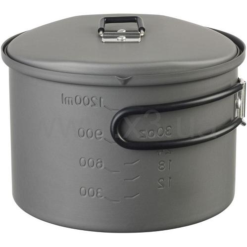 Esbit PT1600HA - компактный котелок из легкого анодированного алюминия. Весит всего 258 г, поэтому его можно прихватить с собой в любой поход, восхождение, пикник. Объема 1600 мл достаточно для приготовления чая или блюда для 3-4 человек. Внутри котелка есть мерная шкала в миллилитрах и унциях. Котелок оснащен складными ручками, имеющими обрезинку, предотвращающую обжиг, а также крышкой с держателем. В комплект входит практичная сетчатая сумка.