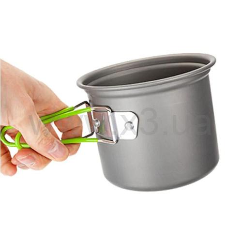 На внутреннюю стенку котелка нанесена мерная шкала. Ручки на котелке и крышке складываются для удобной транспортировки. Силиконовые манжеты позволяют безопасно прикасаться к ручкам, когда система разогрета.