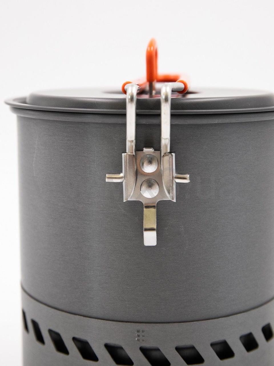 Котелок снабжен встроенным теплообменником-радиатором комбинированным с ветрозащитным экраном.