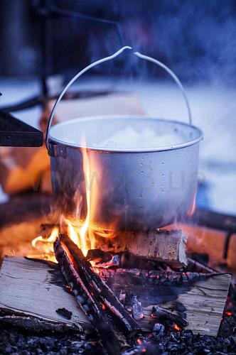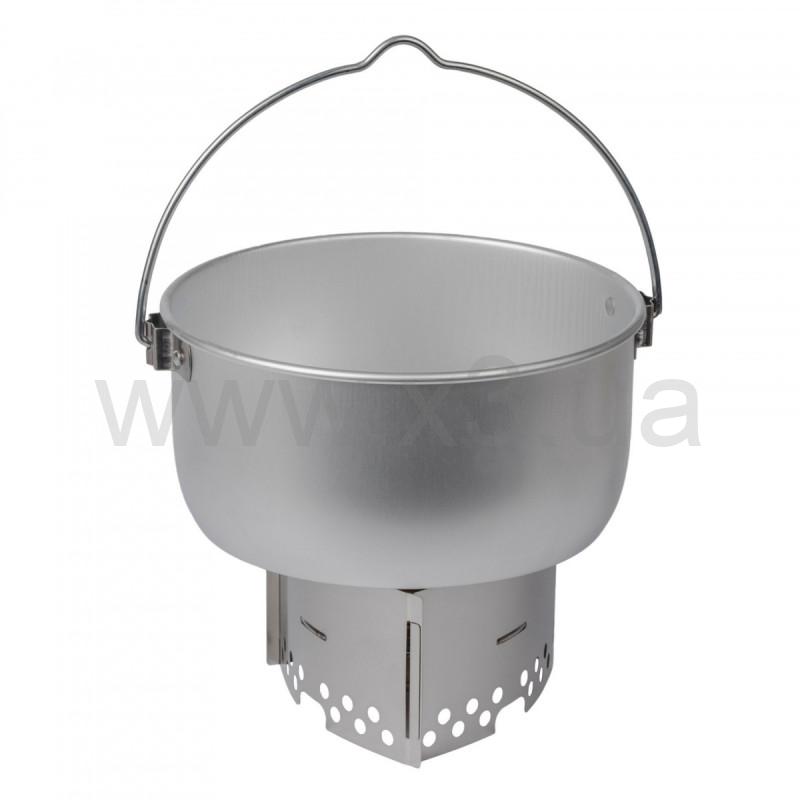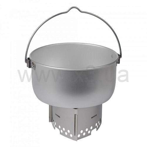 Весит всего 230 г. Малый вес позволяет безопасно использовать казанок даже с компактными туристическими горелками.