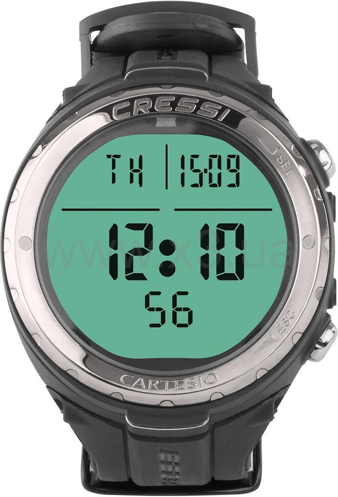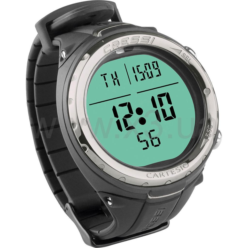 Cartesio имеет диаметр всего 48 мм и высококонтрастный дисплей 35 мм. Это компьютер с чрезвычайно небольшими размерами. Это также идеальные часы для других подводных работ, благодаря опции деактивации функций «погружения», которая позволяет избежать ненужных сигналов тревоги, пока вы плаваете. Дисплей изготовлен из минерального стекла, а корпус имеет большую нагрузку со стальными кнопками, которые имеют подводное сопротивление до 120 м. Резиновый браслет с пряжкой из нержавеющей стали.
