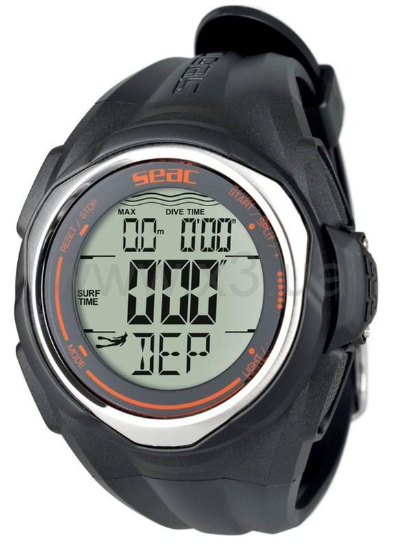 Компьютер Seac Partner имеет дисплей с подсветкой и удобным интерфейсом. Он предлагает данные погружения, время, а также глубину и температуру. Его дизайн черный и идеально подходит для запястья дайвера.