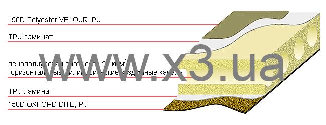 Ткань верхней поверхности MICROVELOUR повышает комфортность и гарантирует приятный контакт с телом. Стойкая к износу и усиленная вплетением более прочной нити ткань дна OXFORD DITE предотвращают скольжение коврика, увеличивают срок эксплуатации.