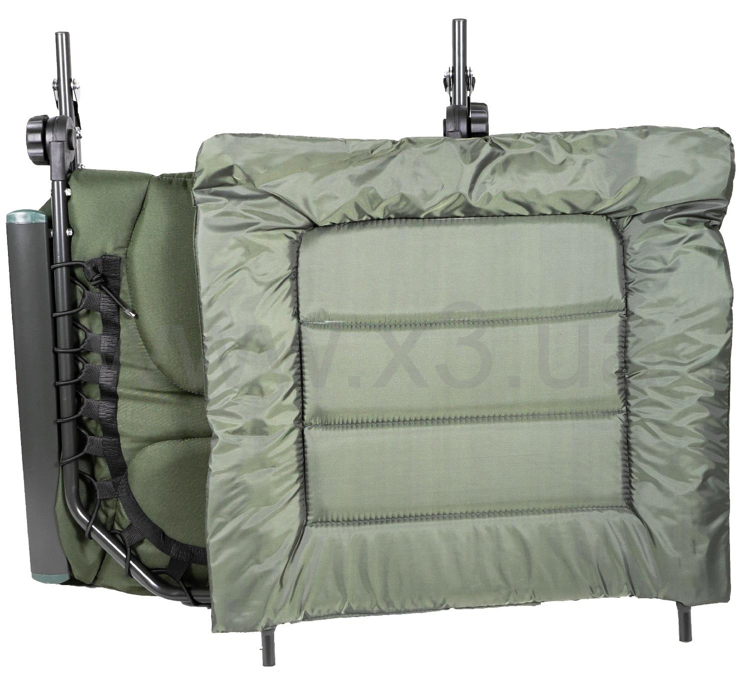 Ножки устойчивы и не погружаются в грунт, благодаря пятакам увеличенной площади - 9 см.. Стальная конструкция кресла мощная и, в тоже время, максимально облегчена за счет алюминиевых подлокотников. Для большего удобства в комплекте идет чехол для транспортировки, Вам больше не нужно искать куда всунуть кресло, или докупать чехол. Спинка регулируется под любым углом, вплоть до горизонтального положения, конструкция фиксатора – закрутка, более надежная. Благодаря тому, что конструкция кресла крепится болтами, можно легко снять ткань для стирки и без проблем крепить обвес для рыбалки. При необходимости можно снять подлокотники. В верхней части кресла находится мягкая подушка, отдельно не нужно будет брать с собой. В средней части кресла предусмотрена дополнительная вставка с наполнителем из дышащей ткани, благодаря чему менее устаешь и не будет жарко при длительном нахождении на кресле. Тканевая основа больше чем ширина кресла,