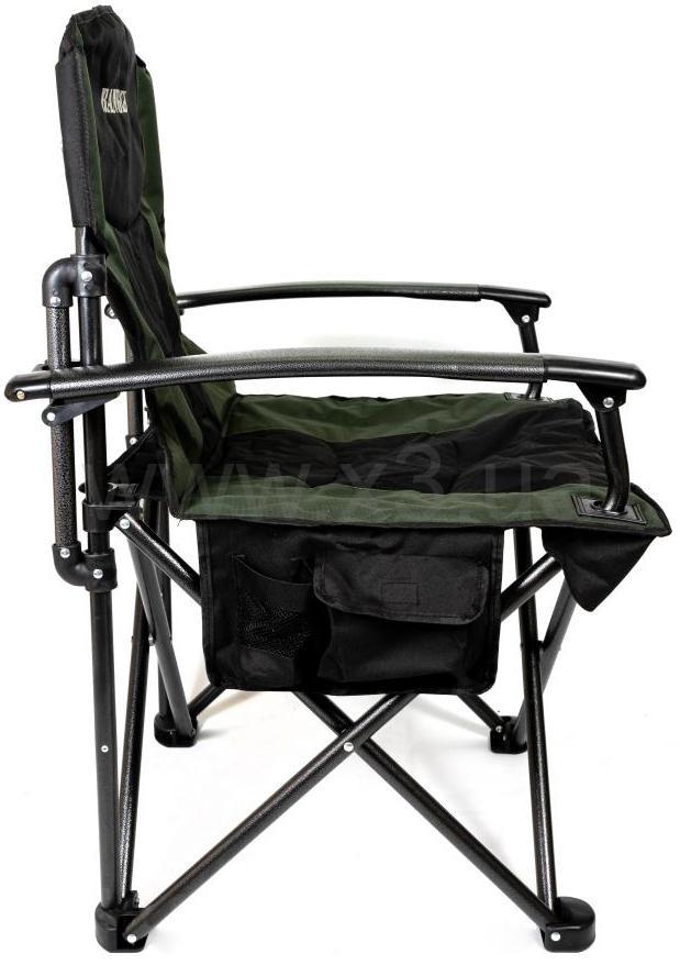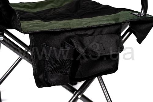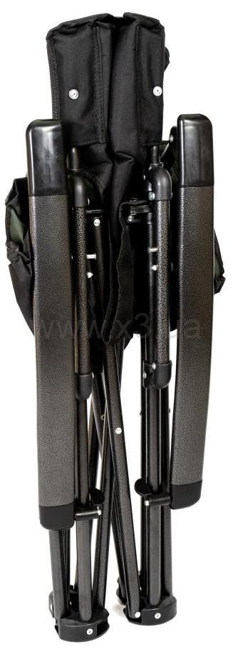 Раскладывается кресло просто, подлокотники в задней части фиксируется, для большей жесткости и надежности конструкции. В собранном положении кресло хорошо фиксируется и, благодаря конструкции, очень устойчиво. Перевернуть кресло практически невозможно, широко расставленные опоры имеют и достаточно большую площадь поверхности, чтобы ножки не могли погружаться в песок. Дополнительно предусмотрена сумка с двумя карманами сбоку, для хранения бутылки или мелочей.