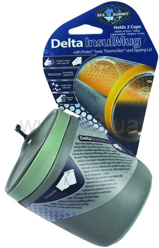 Термокружка Sea To Summit Delta InsulMug отлично сохраняет тепло за счет дополнительного внешнего полиуретанового рукава и крышки. Сделана из износостойкой и прочной пластмассы. Отлично подойдет для длительных экспедиций, походов или отдыха на природе. Так же, на крышке есть отверстие для питья.