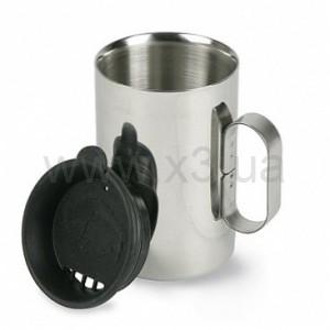 Термокружка с крышкой Tatonka Thermo Delux 300 из нержавеющей стали, двухслойная с плоской ручкой, что позволяет сохранять горячее горячим, а холодное холодным.