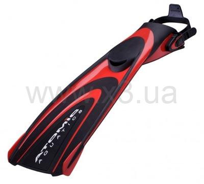 Ласты регулируемые, имеют боковые рёбра для усиления, они же препятствуют скатыванию воды в стороны, а направляют поток вдоль лопасти по ходу движения ноги. Более мягкая центральная зона прогибается при плавании, тем самым выполняет роль накопителя энергии, высвобождая её в конце толчка.