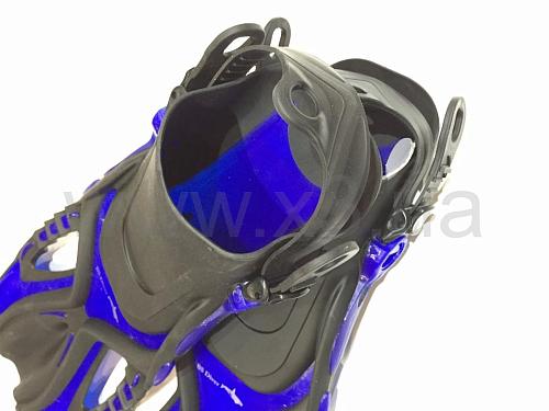 Ласты для дайвинга BS Diver GlideFin - это отличный вариант дайверских ласт с открытой пяткой от отечественного бренда BS Diver. Калоша - терморезины, с открытой пяткой, поэтому лучше всего использовать такие ласты под неопреновые ботинки. Пряжка ласты BS Diver GlideFin - быстроразъёмная. С ней не возникнет проблем, когда понадобится быстро отстегнуть или пристегнуть ласту в воде. Лопасть - частично из пластика, частично изготовлена из терморезины. Терморезина в лопасти обеспечивает более мягкий гребок, что особенно оценят женщины и дети. Из терморезины в центре изготовлены специальные каналы, задача которых - удержать лопасть на потоке воды, уменьшив потери энергии. Для этих же целей предназначены два небольших пластиковых выступа-ребра, а также два отверстия в основании лопасти, которые устраняют эффект завихрения под лопастью.