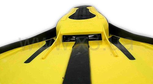 Два стабилизирующих хвостовых плавника на конце лопасти и на подошве стопы гарантируют превосходную направляемость движения потоков воды и, как следствие – стабильность направления движения пловца во время гребка. Превосходная, высоко анатомичная, разработанная с помощью компьютерных технологий галоша гарантирует оптимальную передачу усилия.