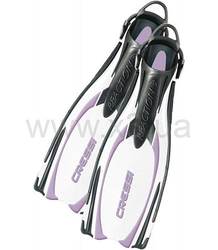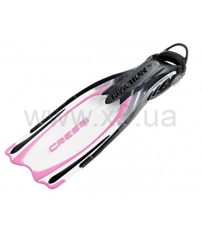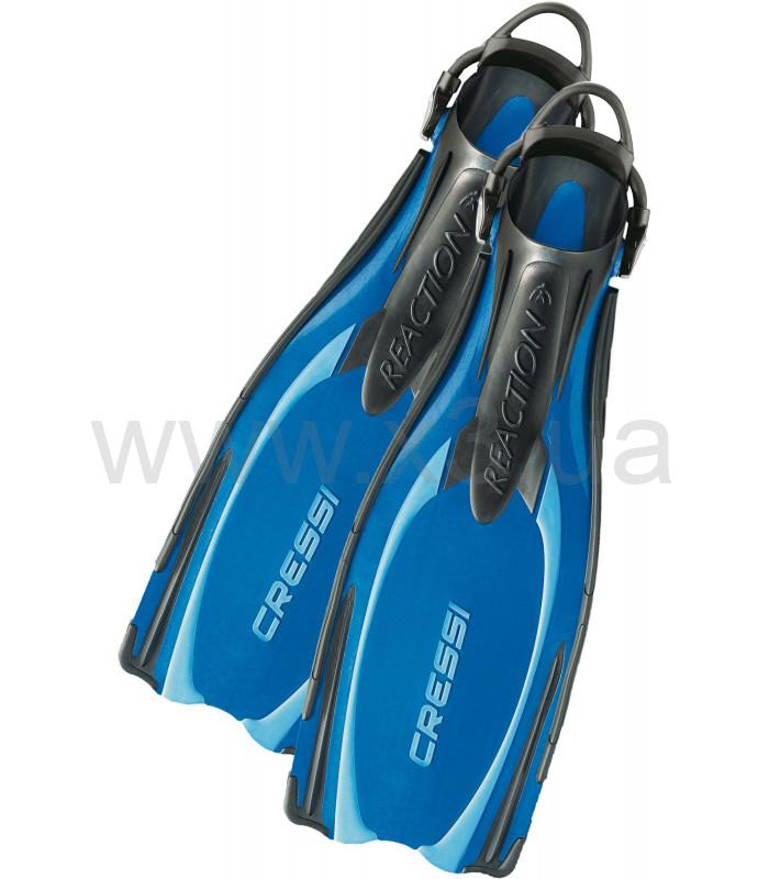 Ласты Cressi Sub Reaction EBS - новейшие из ласт Cressi для погружения с аквалангом, и имеют все преимущества эксклюзивной запатентованной технологии Cressi - сочетания трёх различных материалов для гарантии непревзойденных качеств. Reaction EBS использует многие из инновационных характеристик, представленных в других моделях: лопасть, которая начинает формироваться уже с калоши; дифференцированная толщина лопасти; слои, выполненные из двух различных материалов; подошва, сделанная полностью из противоскользящего материала; очень удобная, разработанная с помощью компьютерных технологий калоша и новая пружинная застежка. Ласты изобилуют сложными высокотехнологичными составляющими, всеми теми компонентами, необходимыми для создания того особого сочетания, которое всегда делает ласты Cressi непревзойдёнными. Материал, выбранный для лопасти, является не традиционным полимером, а новейшим поколением технического полипропилена, который намного более податлив, гибок и элегантен. Лопасть очень длинная и была разработана специально для того, чтобы получить лучшее соотношение усилия гребка и затрачиваемого на него усилия. Толщина лопасти не однородна: она постепенно становится тоньше по мере продвижения к концу ласты, для того чтобы гарантировать более сильный и адекватный изгиб лопасти. Лопасти сделаны из двух различных материалов, которые чередуются и используются в различных элементах ласты для повышения гибкости структуры в различных зонах лопасти и усиления реактивности эффекта отдачи. Разработанная с помощью компьютерных технологий подошва выполнена полностью из мягких эластомеров для исключительно удобного и устойчивого размещения стопы, чтобы гарантировать превосходную передачу гребного усилия. В то же самое время, калоша с широкой подошвой упрощает извлечение ноги из ласты в конце погружения и создает превосходный противоскользящий эффект, который способствует надеванию ласт на суше или в момент погружения с лодки или с берега. Удобные пружинные крепления помогают найти идеальное положение на заднике ботиков или носков.