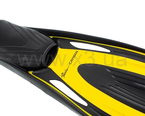 Ласты Marlin Cayman с закрытой пяткой (Марлин Кайман) – удобные и эффективные универсальные ласты. Они отлично подойдут не только для дайвинга и сноркелинга, но и для подводной охоты в камышах. Использование новейших материалов и внедрение новых технологий позволило сделать работу лопасти более эффективной. Двухкомпонентная лопасть (полипропилен с вставками из резины) ласт имеют отверстия-каналы, которые при гребке оптимизируют поток воды и придают ему ускорение, чем снижают нагрузку на мышцы ног. Эргономичная резиновая калоша хорошо облегает ногу, обеспечивая максимальное удобство надевания и предельный комфорт при длительном использовании.