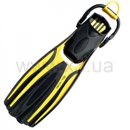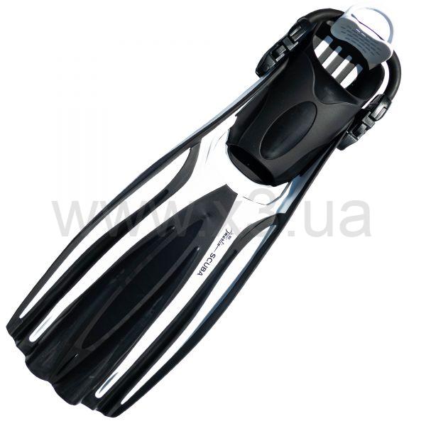 Ласты Marlin Scuba (Марлин Скуба) – профессиональные ласты с открытой пяткой для дайвинга. Предназначены для одевания на неопреновый ботинок. Двухкомпонентная лопасть изготовлена из технополимера и термопластичной резины. Конструкция лопасти имеет несколько особенностей, которые обеспечивают максимальную силу гребка, скорость и маневренность: