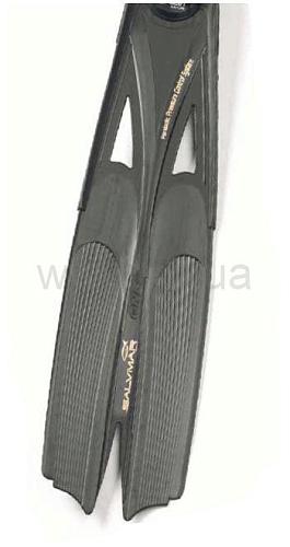 Система дифференцированных подкреплений позволяет согнуть лопасть в виде параболической дуги. Лопасть оказывается крайне реактивной благодаря двояковогнутому контуру, который действует как пружина. С помощью такой безукоризненной формы лопасти энергия движения ноги быстро передается ластам.