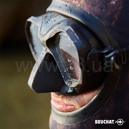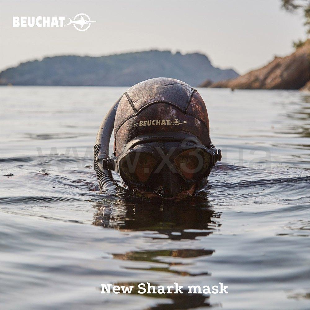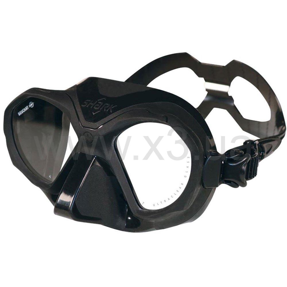 Новая маска Beuchat Shark созданная для подводной охоты и фридайвинга выполнена из темного силикона с очень маленьким внутренним объемом. Несмотря на миниатюрность, маска имеет широкий угол обзора. Комфортно садится на лице пловца. Форма обеспечивает хорошую гидродинамику. Очень маленький внутренний объем маски Beuchat Shark значительно уменьшает количество усилий, необходимых для выравнивания давления. Это делает маску более комфортной и увеличивает удовольствие от вашей подводной охоты или занятий фридайвингом. Кроме того, зернистая текстура маски предотвращает скольжение пальцев во время регулировки и во время маневров выравнивания давления. Ремешок имеет широкую заднюю опорную ленту и систему микрорегулировки для лучшего сцепления и большего комфорта.
