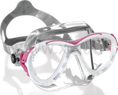 Для каркаса маски использована эксклюзивная запатентованная система Cressi с двойным напылением эластомера на жесткий элемент, при этом застежки ремня устанавливаются не на каркас обтюратора, как это сделано у других производителей, а на эластичный противоударный элемент, который расположен под наклоном в вертикальной плоскости и который можно развернуть на 180 градусов, при помощи находящегося по сторонам маски 2 винтов.