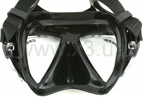 Маска имеет незначительный внутренний объем, и рекордно легкий вес - всего 175 г, новую форму чрезвычайно удобную форму обтюратора с исключительными прилеганием, и сверхпрочными застежками, которые составляют с корпусом единое целое, что делает маску очень легкой.