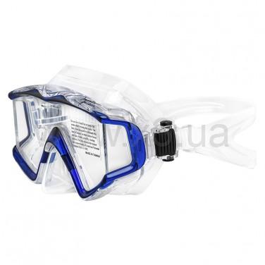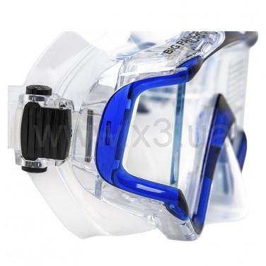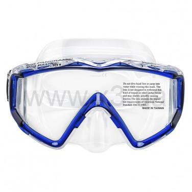 Маска Marlin Big Panoramic Blue (Марлин Биг панорамик Блу), в дополнение к цельному панорамному стеклу, имеет боковые стеклянные вставки, выполненные по специальной технологии «FULL VISION», Благодаря этому соединение стекол кажется невидимым, создается впечатление непрерывного панорамного обзора. Мягкий высококачественный силикон, анатомическая форма обтюратора делают маску герметичной и максимально комфортной. Хорошо подходит для дайвинга, сноркелинга.