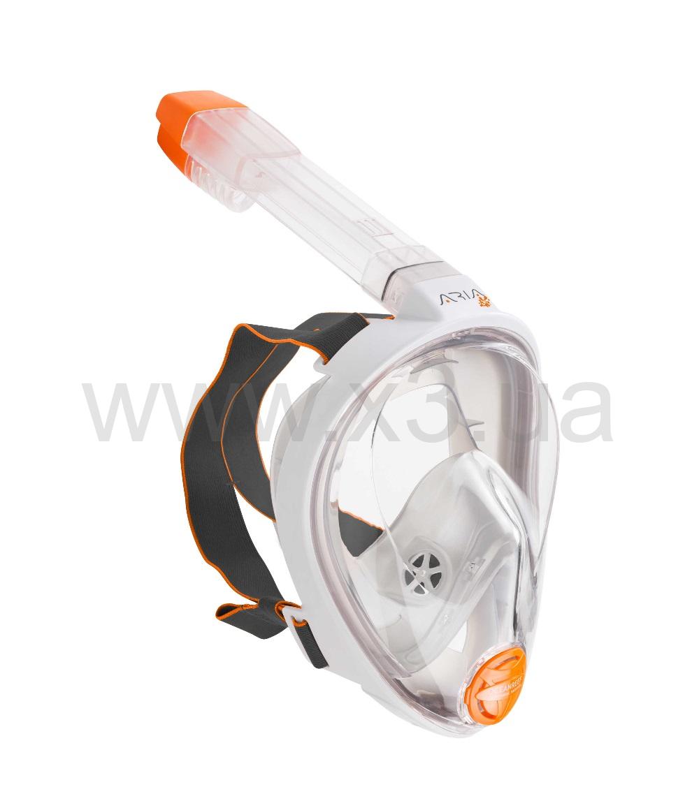 Полнолицевая маска для снорклинга с широким полем зрения для мелкого фридайвинга и снорклинга на поверхности. Маска позволяет дайверам дышать через нос, а «сухой верх» предотвращает попадание воды в трубку. Маска обладает наибольшим полем обзора среди всех сноркелевых масок. Внутри рамки маски дыхательная циркуляция гарантирует отсутствие запотевания и лишнего напряжения. Он также оснащен док-станцией для установки подводных камер и поставляется в ярких цветах.
