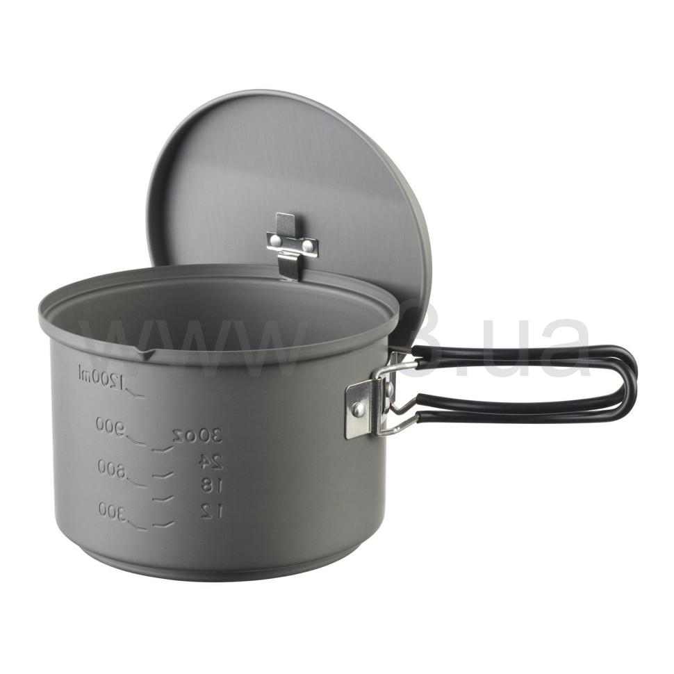 Esbit CS1500HA - легкий, изготовленный из прочного анодированного алюминия, набор для приготовления пищи, состоящий из котелка и спиртовой горелки. Для гашения пламени регулятор конфорки имеет откидную ручку. Котелок имеет объем 1500 мл, чего достаточно для приготовления пищи для 2-3 человек в походах, в кемпинге или на рыбалке. Кастрюля имеет индикацию объема в унциях и литрах, а ручку из нержавеющей стали можно сложить для экономии места. Крышка оснащена практичной подвеской. Комплект можно упаковывать в свой сетчатый мешок.