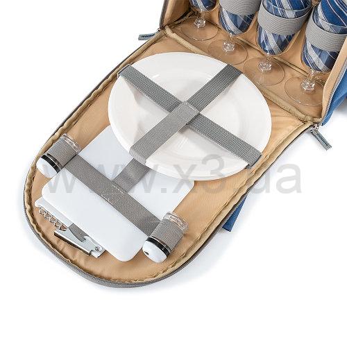Весь набор упаковывается в удобный и практичный рюкзак со встроенным изотермическим отделом объемом 15 литров, который способен удерживать температуру внутри до 8 часов (при условии использования аккумуляторов холода) – благодаря данной функции ваши продукты сохранят свежесть даже в летнюю жару.
