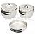 Все предметы набора изготовлены из высококачественной нержавеющей стали AISI304 (Fe/Cr18/Ni8, "18/8"). Сковородка, кастрюли и их крышки имеют удобные складывающиеся ручки, покрытые теплоизолирующим полимером.