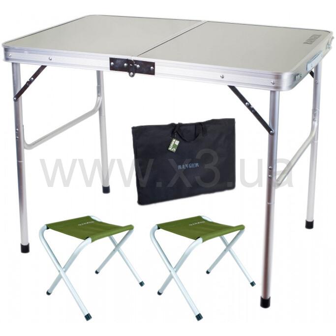 Комплект мебели складной Ranger ST 201— это стол с двумя табуретками идеальное решение для поездок за город или отдыха на свежем воздухе, для двух человек. Стол и стульчики очень просто и быстро раскладываются и складываются. Выезжая на отдых, за город, или пикник, или, на рыбалку, возьмите с собой комплект мебели складной Ranger ST 201 и отдых будет незабываем и удобен. За столом спокойно смогут разместиться до 4 человек, а для 2-х это будет очень просторно. Места для хранения столу нужно совсем немного и в багажнике легкового авто, всегда найдётся место. Стол складывается пополам так, что превращается в небольшой чемоданчик, стульчики вкладываются внутрь и нет необходимости возить их отдельно. Столешница из ламинированного ДВП. Лёгкий, удобный, устойчивый стол ещё и регулируется по высоте в двух положениях. Алюминиевый профиль увеличенной ширины — 50 мм. Комплектуется чехлом. В сложенном виде занимает очень мало место, внутрь стола могут поместиться 2 стульчика.