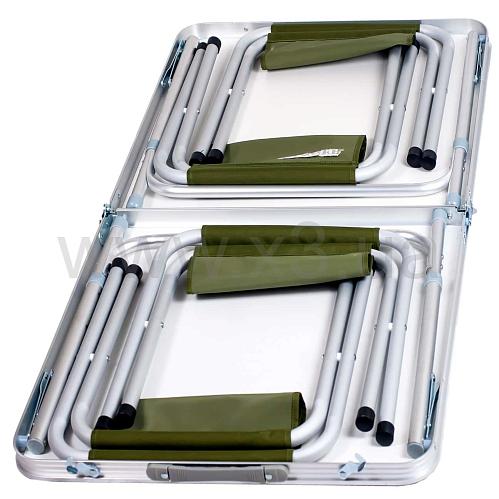 Стол складывается пополам так, что превращается в небольшой чемодан. Упакованная мебель поместится в багажник любого легкового автомобиля.