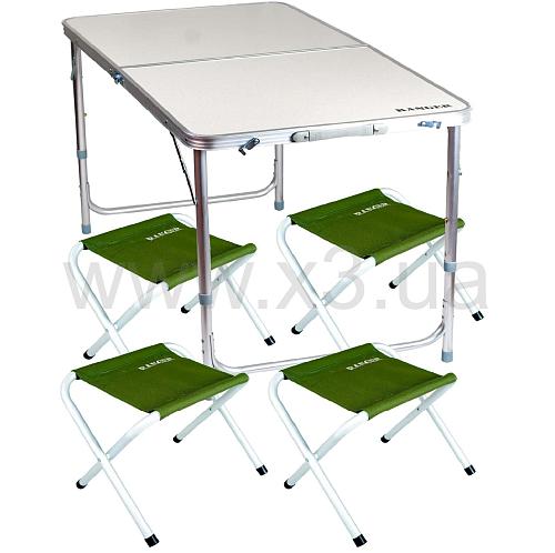 Складной пикниковый стол с четырьмя стульями Ranger ST 402 для семьи или небольшой компании – просто идеальное решение. Стол и стулья очень просто и быстро разлагаются и складываются. Эргономичная конструкция ножек стола (дуги внизу стола) не позволяет погружаться в грунт.