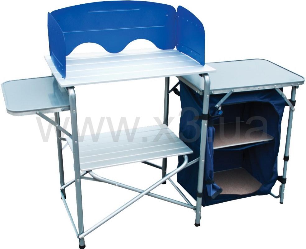 Складная походная кухня TRF-021 изготовлена из высококачественных материалов, что гарантирует долговечность и практичность данной модели. Имеется ветрозащитный экран, а удобный шкаф оснащен полками, специально предусмотренными для посуды и продуктов питания.
