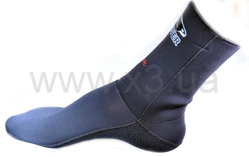 Носки Ultralex для подводного плавания толщиной 5 мм, выполнены из суперэластичного неопрена продублированного с обеих сторон нейлоном, подошва для износостойкости усилена дюратексом.